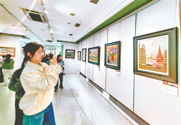 近日,哈爾濱市道外區(qū)南直路上的哈藥六版畫(huà)博物館內(nèi),眾多市民、游客在參觀。在這處被譽(yù)為“東北盧浮宮”的博物館里,展出了許多精美的版畫(huà)、油畫(huà)。館內(nèi)還可以看到巴洛克浮雕、水晶大吊燈、羅馬圓柱等。人們一邊參觀,一邊拍攝照片、視頻發(fā)到朋友圈。