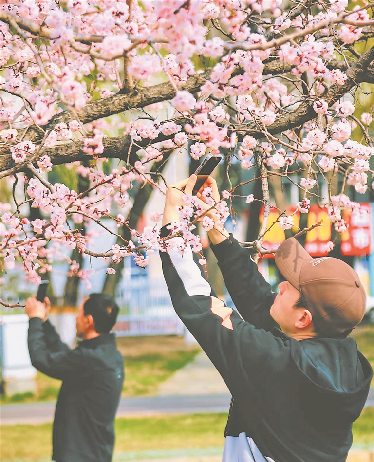 一團(tuán)團(tuán)、一簇簇杏花競相綻放,似天邊絢麗的云霞飄落人間,為佳木斯這座城市精心勾勒出一幅絕美而靈動(dòng)的畫卷。
