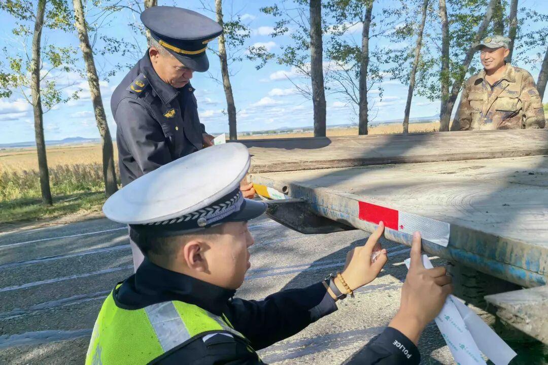 行動中,“警農(nóng)”聯(lián)合執(zhí)法小組結(jié)合轄區(qū)秋收農(nóng)機(jī)出行規(guī)律,在農(nóng)村主干道、田間出入口等路段設(shè)置臨時檢查點,按照“逢車必查、違法必究”的原則,對過往拖拉機(jī)、農(nóng)用車進(jìn)行逐一檢查,嚴(yán)厲打擊無牌無證、酒駕醉駕、違法載人等交通違法行為,形成嚴(yán)查、嚴(yán)管、嚴(yán)處的高壓態(tài)勢,從源頭上預(yù)防和減少交通事故。同時,針對秋收期間農(nóng)用車、農(nóng)機(jī)具夜間作業(yè)頻繁,反光標(biāo)識缺失易引發(fā)事故的問題,持續(xù)深化“亮尾”行動,對上路行駛的農(nóng)用車、大型農(nóng)機(jī)具等車身無反光標(biāo)識、反光標(biāo)識不清晰不完整的車輛現(xiàn)場免費粘貼反光貼,確保車身側(cè)面、尾部關(guān)鍵部位反光標(biāo)識清晰可見,提升夜間行駛辨識度;并向群眾面對面講解農(nóng)用車違法載人、無牌無證、駕駛報廢車輛上路行駛等交通違法行為的危害性,切實提升安全出行意識和自我保護(hù)意識,引導(dǎo)群眾自覺遵守交通法規(guī),養(yǎng)成安全作業(yè)習(xí)慣。