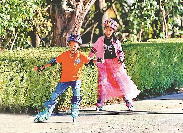 人工湖內(nèi),逐漸枯黃的蘆葦隨風(fēng)搖曳,幾株睡蓮的花朵漂浮在水面上,不時有野鴨、白骨頂雞從水中游過,游人們紛紛拿出手機(jī)拍下美麗瞬間。孩子們有的騎車,有的玩輪滑,有的在樹林間奔跑玩耍,歡笑聲此起彼伏。