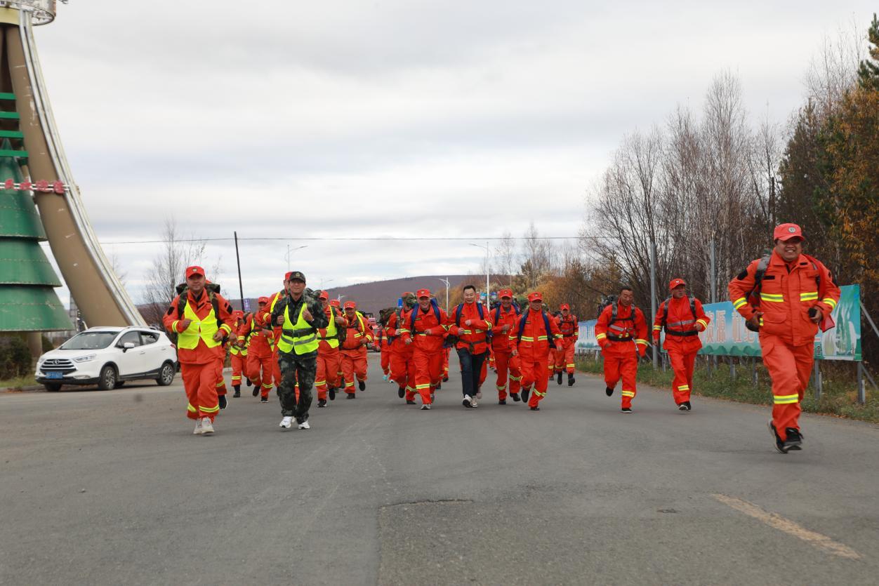 阿木爾林業(yè)局撲火專(zhuān)業(yè)隊(duì)員在進(jìn)行負(fù)重跑比賽(王力 攝)