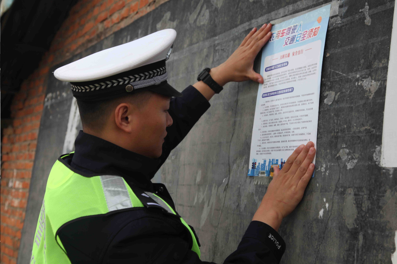活動(dòng)中,宣傳民警深入農(nóng)村大集、農(nóng)戶(hù)家中及田間地頭,通過(guò)發(fā)放交通安全宣傳資料、粘貼海報(bào)和以案說(shuō)法等形式,全面細(xì)致地為村民們講解酒駕醉駕、無(wú)牌無(wú)證、超員超速、農(nóng)用車(chē)違法載人、駕乘摩托車(chē)和電動(dòng)自行車(chē)不佩戴安全頭盔、駕乘汽車(chē)不系安全帶以及無(wú)證駕駛等交通違法行為的危害和嚴(yán)重后果,警示教育廣大人民群眾要自覺(jué)抵制各種交通陋習(xí),時(shí)刻牢記遵法出行、文明出行。同時(shí),面對(duì)面地與廣大村民講交規(guī)、話安全、嘮家常,普及秋收期間道路交通安全知識(shí)和惡劣天氣條件下行車(chē)的注意事項(xiàng),積極提醒廣大道路交通參與者要將“安全”二字時(shí)刻牢記心間,自覺(jué)抵制危險(xiǎn)駕駛和不文明駕駛行為,切實(shí)做到“農(nóng)忙不忘安全,豐收更要平安”。