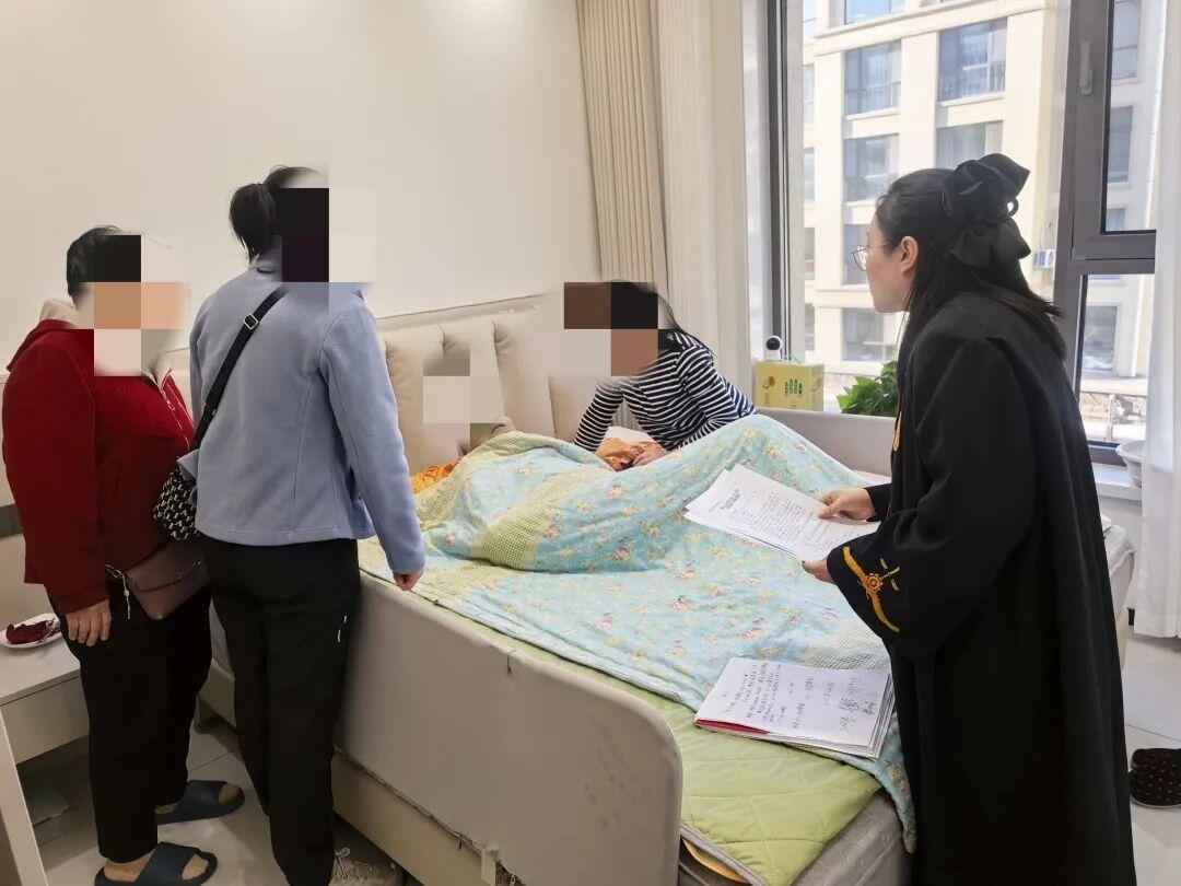 開庭當天,干警們一進老人家門,就忙著搭建“臨時法庭”;法官沒有用急促的問話推進流程,反而把語速放慢了兩倍,拉著老人的手耐心傾聽——這份“把當事人當家人”的細致,漸漸融化了老兩口心中的芥蒂,讓他們愿意敞開心扉溝通。調解結束后,法官特意蹲在張爺爺?shù)牟〈策叾冢骸昂罄m(xù)的法律文書我們會直接送過來,您和阿姨要是有任何疑問,隨時給我們打電話,不用來回跑法院。”聽到這話,張爺爺看著干警們收拾東西的背影,渾濁的眼睛里忽然泛起了微光,他輕輕吐出兩個字:“謝謝”。這簡單的兩個字,藏著老人及家人對“司法不缺位”的深深感激,更映出了人民群眾對“司法為民”的熱切期盼。