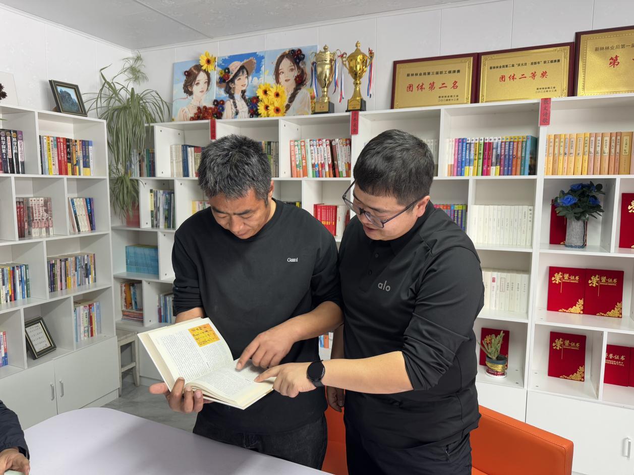 活動現(xiàn)場氛圍熱烈而專注,職工們圍坐長桌,沉浸在閱讀的世界里。有的靜心翻閱書頁、有的起身分享書中精彩片段與深刻感悟。交流環(huán)節(jié)中,大家各抒己見,有人結(jié)合閱讀心得探討護林工作新思路,為生態(tài)保護建言獻策;有人暢談文學(xué)作品中的精神力量,引發(fā)情感共鳴;還有職工并肩共讀,圍繞書中細節(jié)低聲交流,思想的火花在互動中碰撞。原本的“個人沉浸”閱讀,在此刻化作了充滿溫度的“集體共鳴”。