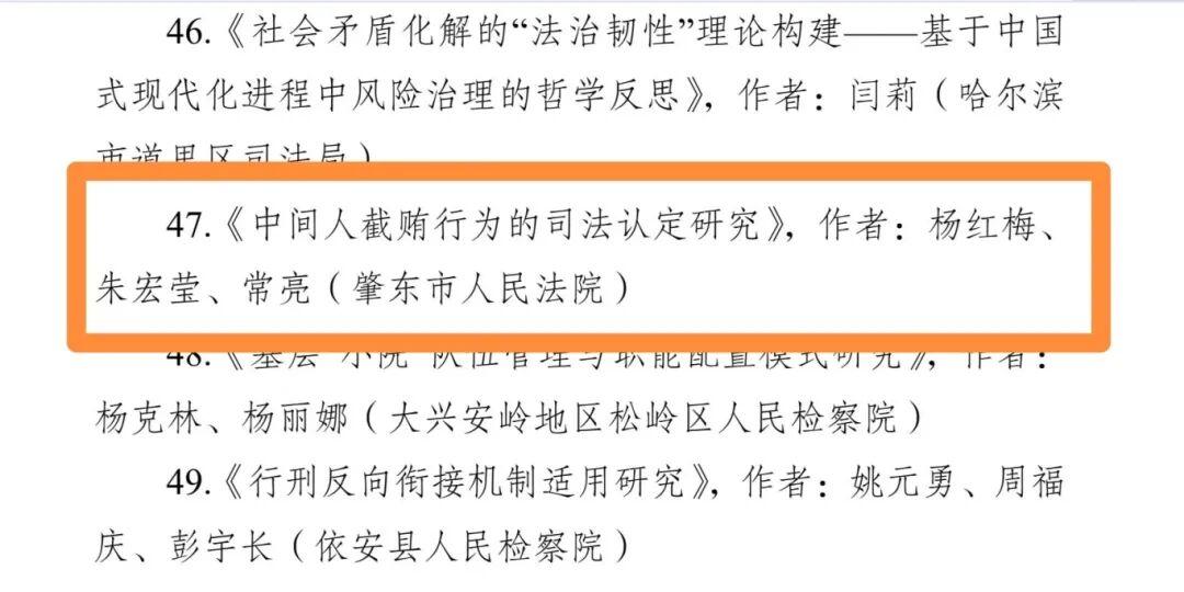 其中,督察室負(fù)責(zé)人楊紅梅、審管辦副主任朱宏瑩、審管辦副主任常亮撰寫的論文《中間人截賄行為的司法認(rèn)定研究》,榮獲三等獎(jiǎng);審管辦副主任朱宏瑩、五站人民法庭負(fù)責(zé)人吳迪、審管辦書記員王岳撰寫的論文《無接觸型性侵兒童犯罪的刑法定性分析》,榮獲優(yōu)秀獎(jiǎng);刑庭法官助理張瑩、刑庭庭長(zhǎng)王帝撰寫的論文《涉訴信訪治理機(jī)制研究》,榮獲優(yōu)秀獎(jiǎng)。