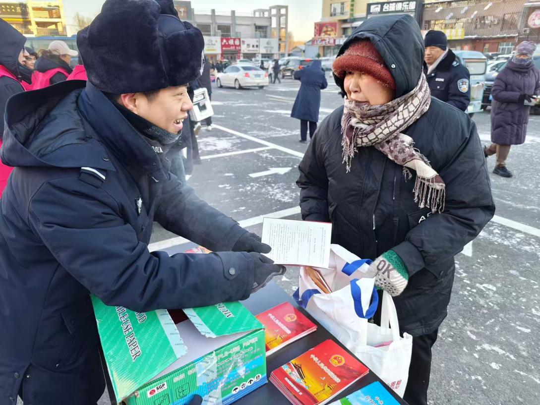 冰天雪地中,民輔警搓著凍紅的雙手仍微笑宣講,逐份發(fā)放《中華人民共和國(guó)憲法》讀本、法治折頁(yè)與防范指南?!斑@么冷的天還出來(lái)送法律知識(shí),這些知識(shí)很實(shí)用,拿回去也讓家里人學(xué)學(xué)”,市民李大爺?shù)母锌莱隽巳罕娦穆?,現(xiàn)場(chǎng)咨詢、聆聽的群眾絡(luò)繹不絕,秩序井然。