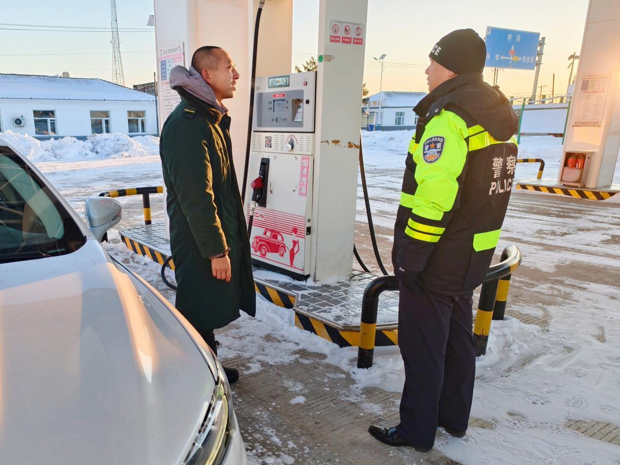 簡(jiǎn)單確認(rèn)情況后,民輔警立即攜帶救援物資,前往事發(fā)地點(diǎn),在最短時(shí)間內(nèi)找到報(bào)警人。在詢(xún)問(wèn)車(chē)內(nèi)油量大約能達(dá)到最近的加油站后,警車(chē)引領(lǐng)報(bào)警人駕駛車(chē)輛抵達(dá)最近的加油站,加滿(mǎn)油后囑咐駕駛員雪天路滑,注意行駛速度,切勿疲勞駕駛。