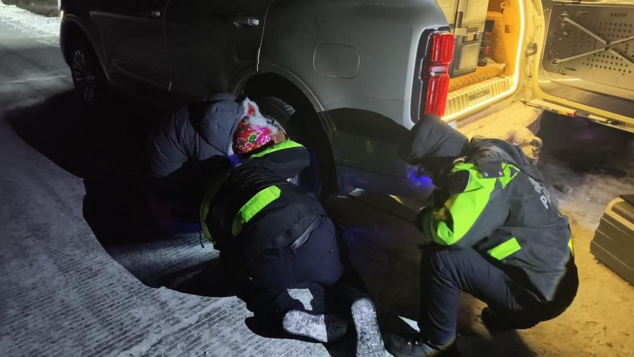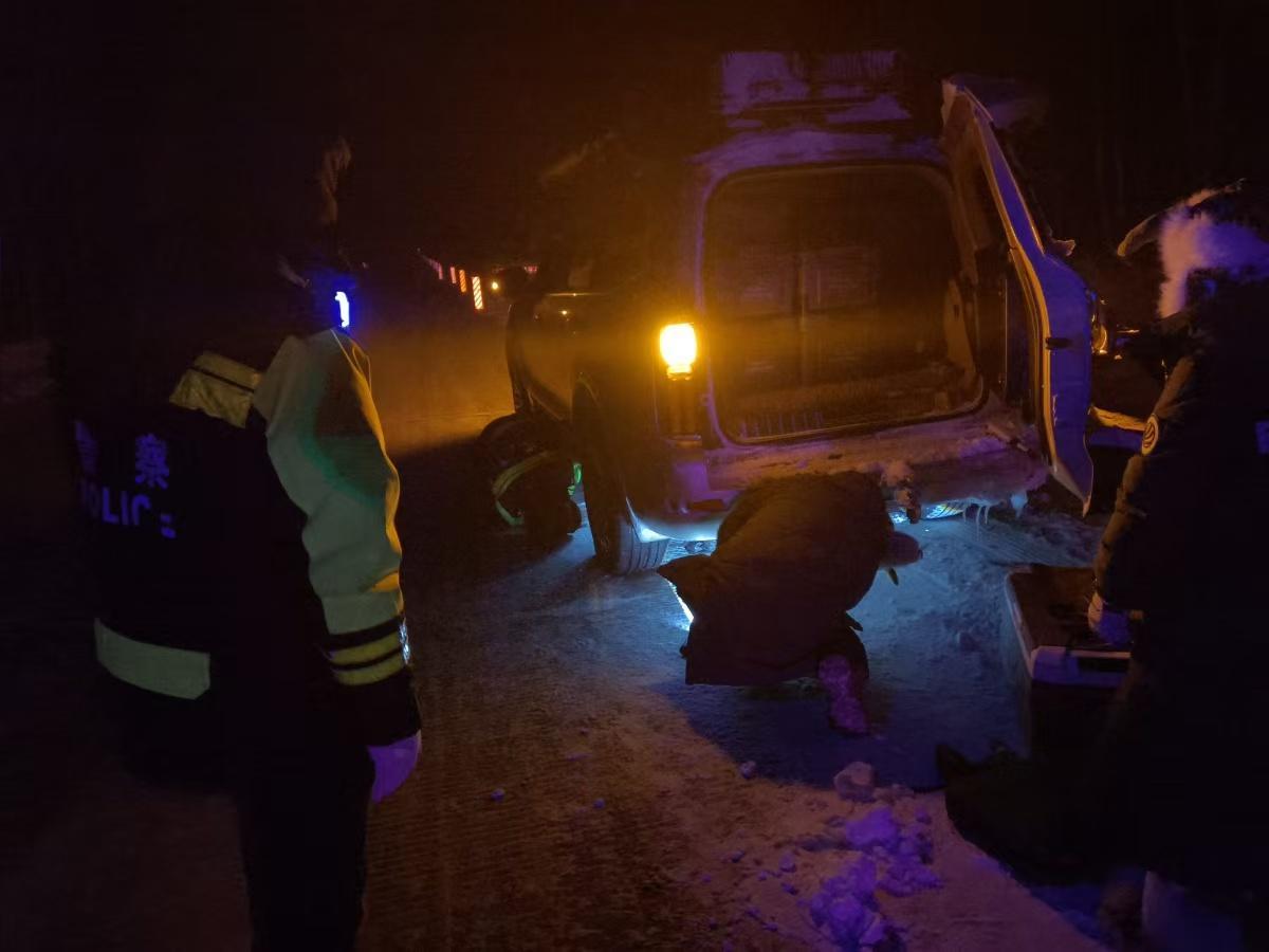 寒夜車輪爆胎 呼瑪交警“警”急救援 暖心服務(wù)顯擔(dān)當(dāng)
