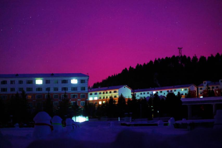 當(dāng)日清晨5時(shí)30分,阿木爾林業(yè)局北方天空悄然浮現(xiàn)橘紅色北極光,澄澈夜空中,流動(dòng)的極光如彩綢漫舞,搭配漫天璀璨星河、靜謐連綿群山,還有城鎮(zhèn)里惺忪的燈光,共同勾勒出一幅夢幻綺麗的北國畫卷,裸眼即可清晰觀賞。當(dāng)?shù)鼐用裉婆康谝粫r(shí)間記錄下這一美景,難掩興奮:“往年總盼著夏至能拍到北極光,沒想到冬季也能邂逅這般盛景,親身感受宇宙的壯麗浩瀚,太幸運(yùn)了!”